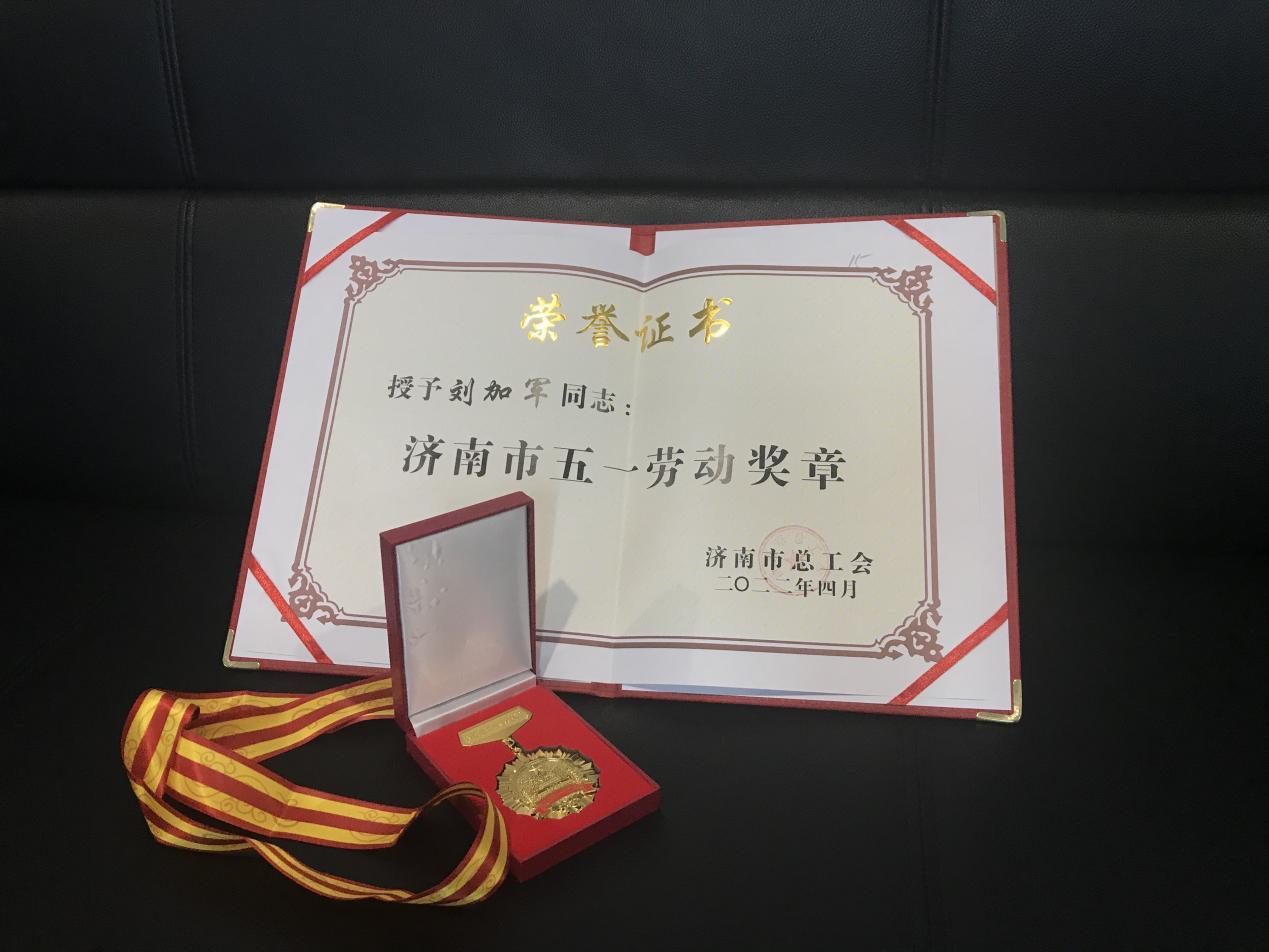 5月12日,在濟南市物業(yè)服務(wù)行業(yè)勞動模范及2021年度五一勞動獎?wù)骂C發(fā)儀式上,魯商服務(wù)員工劉加軍被授予2021年度濟南市五一勞動獎?wù)隆?/span>