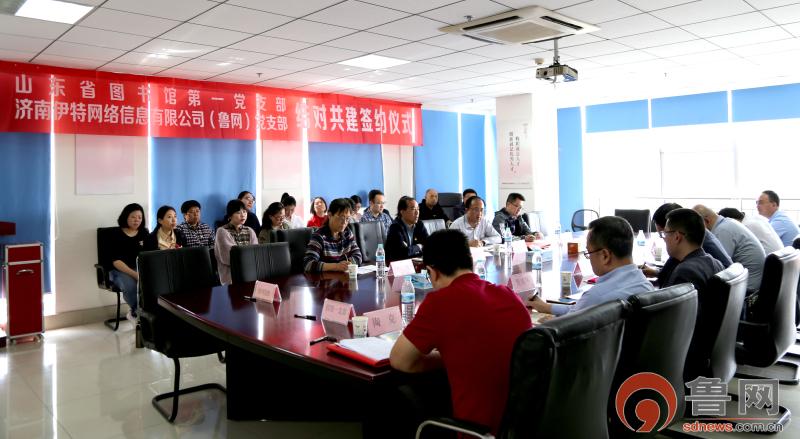 讀書強國,共創(chuàng)先鋒。5月14日上午,濟南伊特網(wǎng)絡信息有限公司(魯網(wǎng))黨支部與山東省圖書館(以下簡稱省圖)第一黨支部簽署結(jié)對共建協(xié)議。會上,省商業(yè)集團有限公司(以下簡稱魯商集團)黨委常委、組織人力資源部部長李林與省圖黨委書記、館長劉顯世為魯網(wǎng)“東山讀書會”揭牌并講話。魯商傳媒集團黨委書記、董事長孫超,魯商傳媒集團黨委副書記、總經(jīng)理、總編輯兼魯網(wǎng)董事長龐道鋒出席。