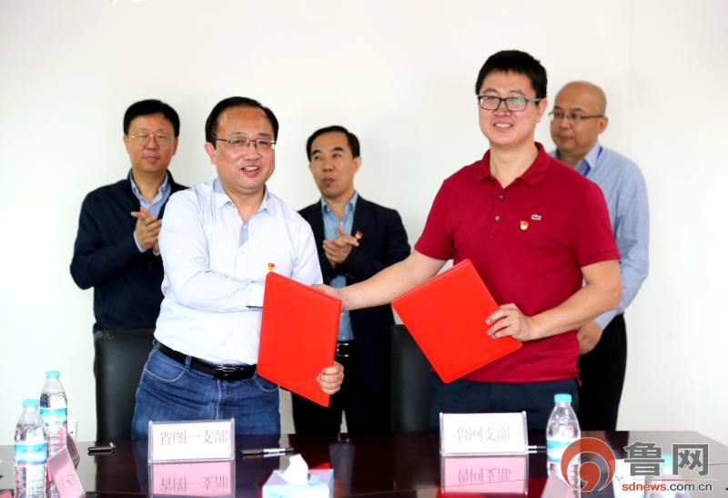 本著“學習交流、共同提高、雙向受益”的原則,省圖第一黨支部書記吳金敦與魯網(wǎng)黨支部書記陶克,分別代表雙方簽訂結(jié)對共建協(xié)議。