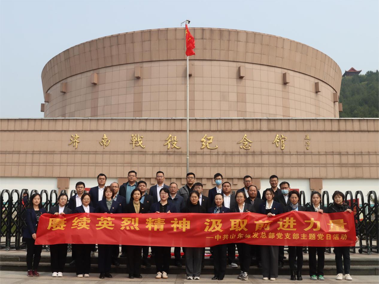 山東城發總部黨支部組織黨員、入黨積極分子及團員赴濟南革命烈士陵園,開展“賡續英烈精神 汲取前進力量”主題黨日活動。向革命先烈鞠躬致敬、敬獻花籃,表達崇高敬意。集體參觀濟南戰役紀念館聆聽革命先烈的感人故事,重溫浴血奮戰、硝煙彌漫的解放戰爭歷史。