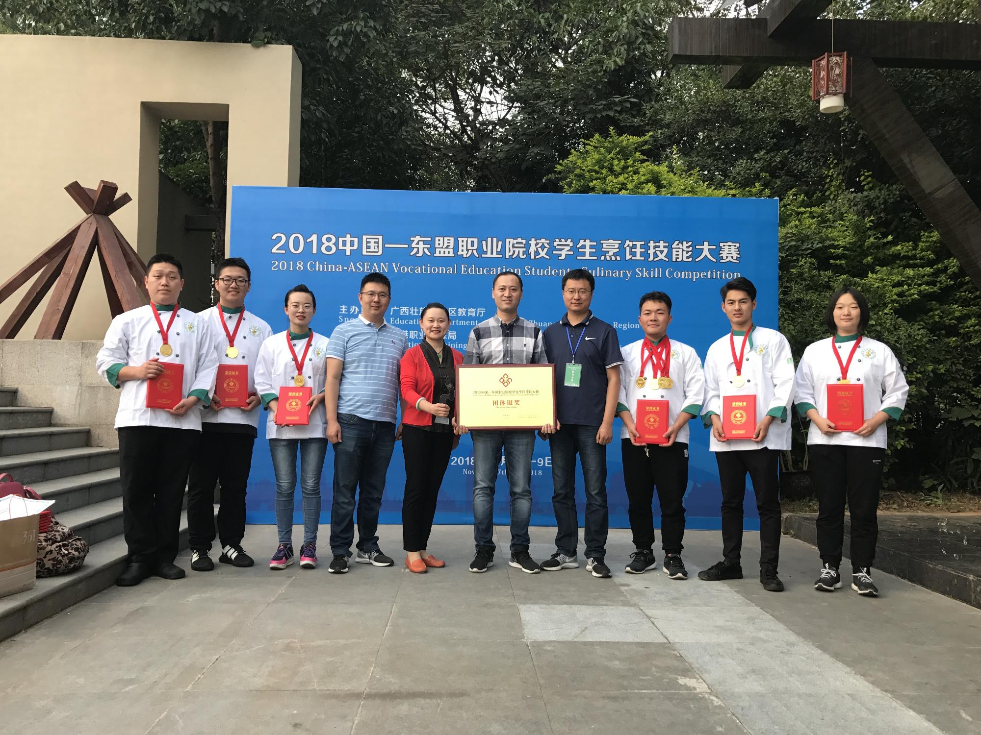 11月7日-11月9日,2018年中國-東盟職業院校學生烹飪技能大賽在南寧職業技術學院隆重舉行,青島酒店管理職業技術學院(簡稱:青島酒店管理職院)勇奪西餐冷菜金牌,并以總分第二的成績奪得團體銀牌。