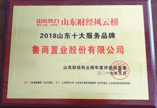 5月24日,“山東勢力·第十六屆(2018)山東財經風云榜”頒獎典禮在濟南舉行,魯商置業股份有限公司(以下簡稱魯商置業)榮獲“2018山東十大服務品牌”大獎。