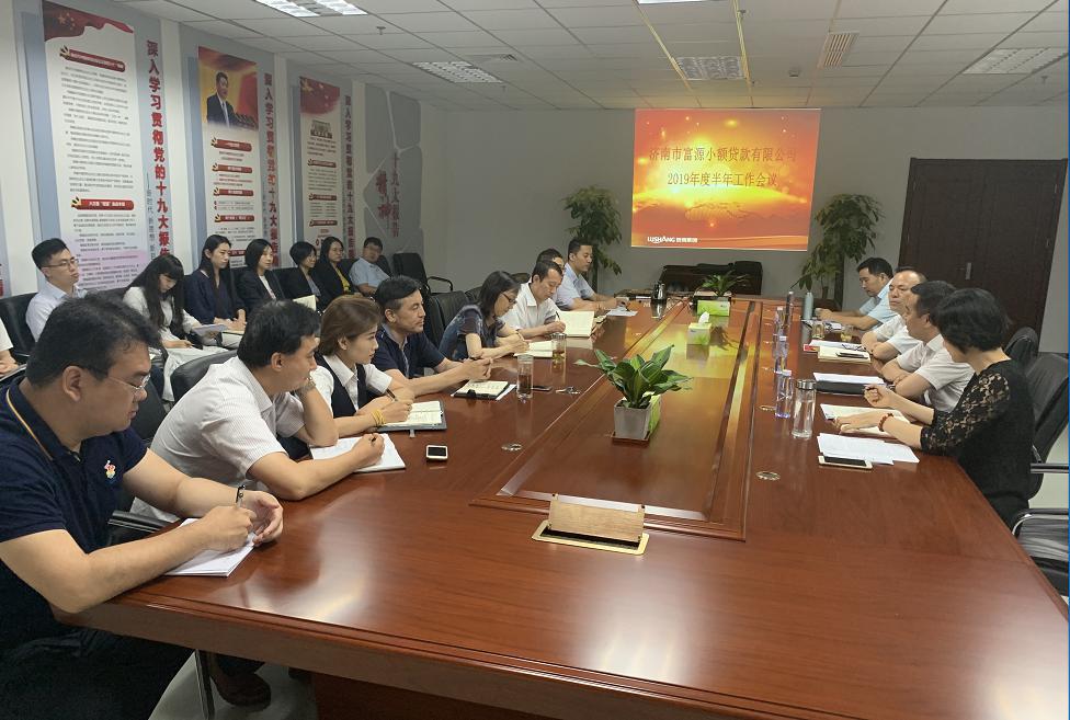 7月19日上午,富源小貸召開2019年上半年工作會議,傳達學習集團半年度會議精神,總結公司上半年工作,布置下半年工作任務。公司董事長王廷波、總經理劉先成及全體員工28人參加會議。
