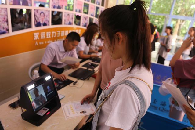 “滴,驗證通過。”學院今年迎新采用數字智能化迎新模式,啟用人臉識別系統,新同學只需幾秒鐘就可以完成報到。每個學院迎新處都配備了一臺機器,供新生“刷臉”注冊,新生只要站在人臉采集設備前稍稍駐足,系統便可以根據現場采集的圖像與數據庫中的新生照片進行識別,并通過生物識別算法迅速抓取學生臉部圖像,精準識別出新生的身份。