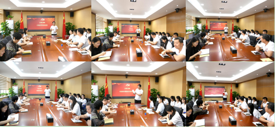 在當天圖書分享主題黨日活動中,6名黨員同志帶著各自學習小組漂流傳閱的黨史、新中國史書籍上臺與大家分享。他們動情地將自己在書中獲得的感悟、心得或者特別喜歡的章節、段落講給在座的每一個人聽,說者聲情并茂,聽者身受感染。黨員郄香分享的《紅色第一家——毛澤東和他的六位親人》引起了全場聽眾的共鳴。當她講到因親人先后獻身革命事業,毛澤東1959年一個人回家鄉掃墓的場景時,黨員干部職工無不被老一輩革命家的紅色精神所折服。