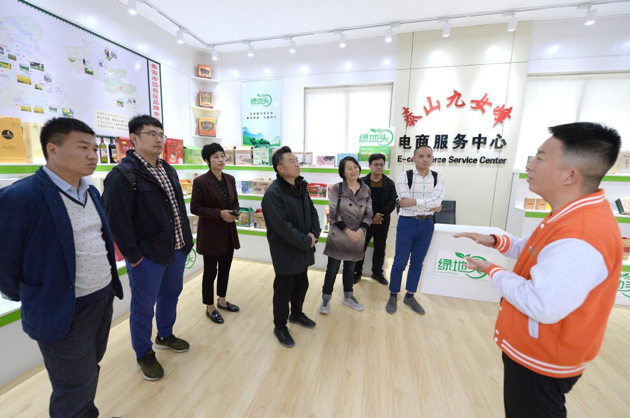 于志華一行首先來到九女峰景區游客中心,參觀了泰山九女峰農村電商服務中心,并對電商平臺的運營發展給予現場指導。有關專家結合實操案例詳細講解了農村電商的運營技巧和注意事項。在泰山茶溪谷產業園,有關負責人介紹了茶葉炒制工序、銷售情況和品牌塑造情況。于志華一行從不同角度對茶葉產品營銷、茶葉采摘運輸和品牌提升等傳授了經驗。