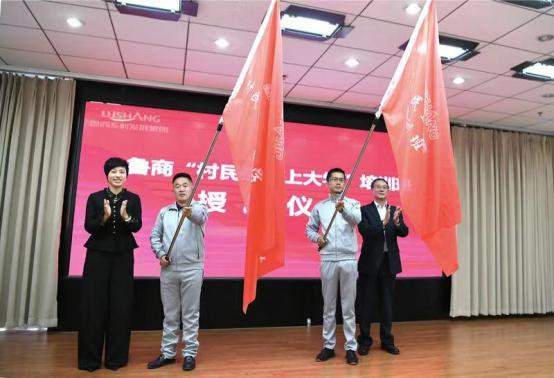 儀式上,孫立波、李華為學員代表授旗,標志著魯商“村民進城上大學”人才振興培訓班正式啟動。