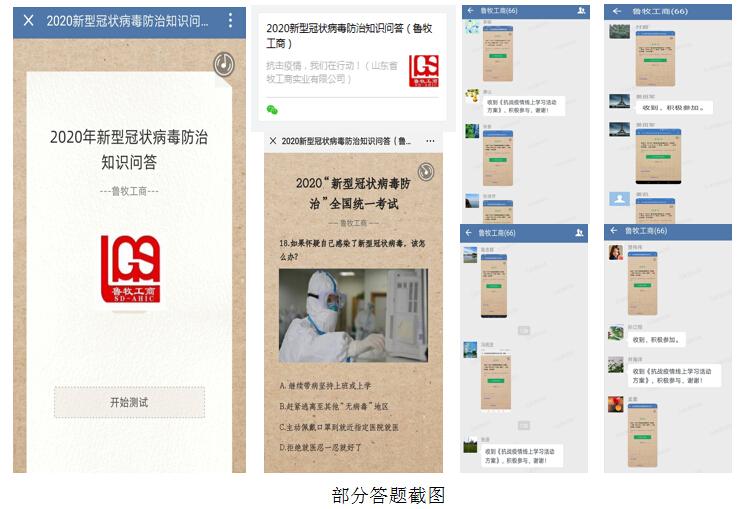為認真貫徹落實上級關(guān)于新型冠狀病毒感染肺炎疫情防控工作部署,進一步加強疫情防控工作,掌握疫情防控科學(xué)知識,保障員工身體健康和生命安全,按照省商業(yè)集團有限公司和投資公司要求,結(jié)合公司實際情況,近日,山東省牧工商實業(yè)有限公司(以下簡稱牧工商)組織全體員工開展“戰(zhàn)疫情線上學(xué)習(xí)答題”活動。