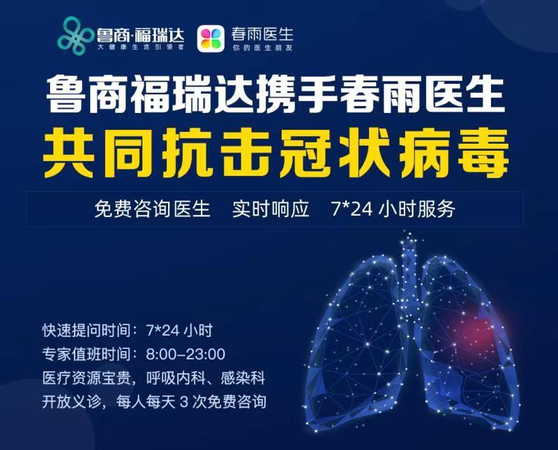 為更好地做好疫情防控工作,自2月4日起,魯商發展下屬的魯商福瑞達健康投資有限公司聯合春雨醫生推出線上義診。用戶通過“福瑞達健康”公眾號底部菜單欄“愛心義診”專題網頁,可向呼吸內科、感染科、內分泌與代謝科室的在院醫生進行咨詢,醫生通過癥狀可初步判斷用戶可能發熱原因,幫助疑似及時到醫院接受規范診療,避免延誤病情。每個手機號注冊登錄后每人每天可免費問診3次。