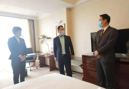 經過體溫檢測等程序后,劉守亮來到酒店頤庭閣客房、上善坊自助餐廳實地察看疫情防控工作。在聽取相關匯報后,劉守亮對酒店客房內增設“紫外線消毒車”“免洗酒精噴霧”,上善坊嚴格遵守堂食規定實行“單人單桌”“分餐位上”“公勺公筷制”等有效防疫舉措給予肯定。