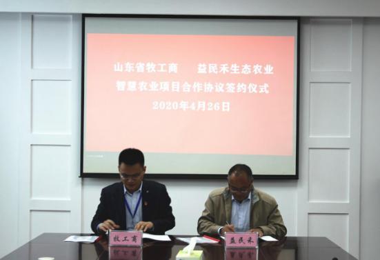 4月26日,山東省牧工商實業有限公司(簡稱牧工商)與益民禾(山東)生態農業發展有限公司(簡稱益民禾)簽署智慧農業項目合作協議。