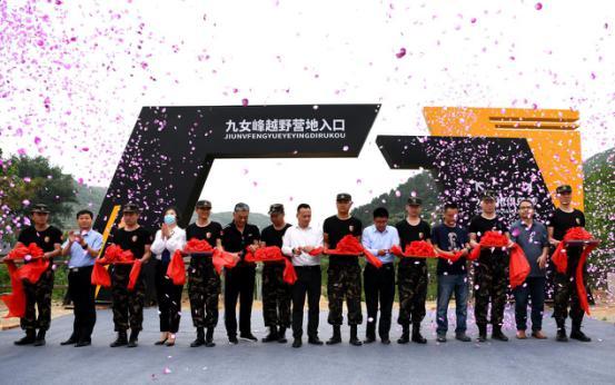 山東省汽車摩托車聯合會秘書長胡慶節,泰安市岱岳區道朗鎮黨委副書記、鎮長李安軍,區教體局黨組成員段文強,越野e族山東大隊泰山分隊動酷基地總經理毛東升,泰安力虎總經理助理王蕾,山東省鄉村振興齊魯樣板研究院副院長聶軍維,魯商九女峰(泰安)鄉村振興有限公司總經理于在武共同為營地剪彩。