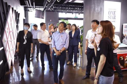 鄉(xiāng)發(fā)展一行先后參觀了JN150創(chuàng)意園黨建服務(wù)中心、主題廣場、合幾空間等園區(qū)業(yè)態(tài)和進(jìn)駐企業(yè),深入了解園區(qū)黨建、招商及商業(yè)模式情況。