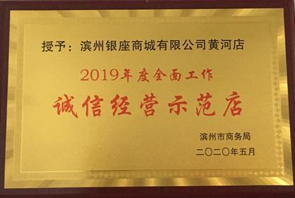 7月13日,中共濱州市委宣傳部、濱州市文明辦、濱州市市場監督管理局、濱州市商務局等單位領導赴濱州銀座黃河店視察,對門店誠信經營的企業精神給予了肯定,并舉行了“2019年度誠信經營示范店”“2019年度全面工作誠信經營示范店”授牌儀式。