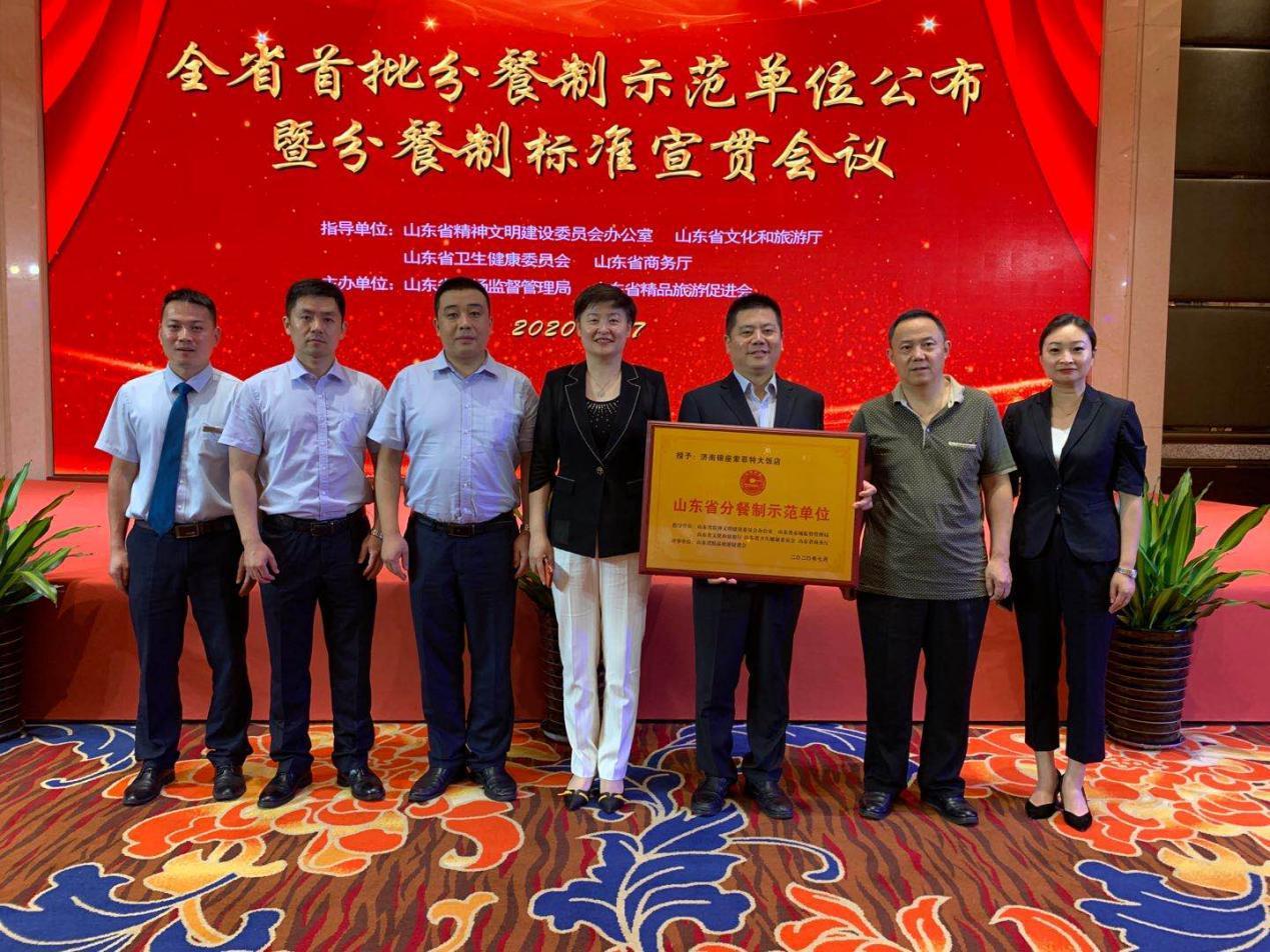 7月17日,由山東省文明辦、山東省文旅廳、山東省衛健委、山東省商務廳指導,山東省市場監督管理局和山東省精品旅游促進會聯合主辦的“全省首批分餐制示范單位公布暨分餐制國標宣貫會議”在濟南召開。會議公布了山東省首批分餐制示范單位名單并授牌,宣讀了推行分餐制的倡議書,宣貫分餐制國家標準和山東省地方標準。