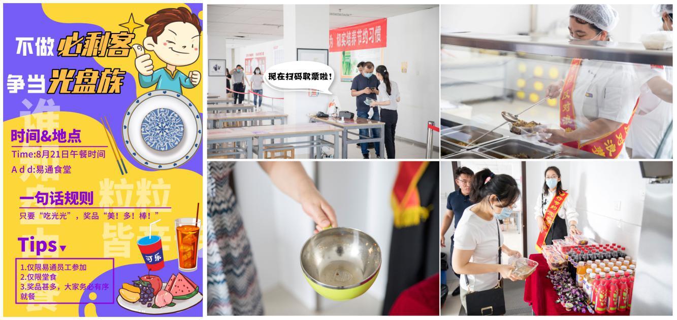 為深入貫徹落實(shí)習(xí)近平總書記關(guān)于“堅(jiān)決制止餐飲浪費(fèi)行為,切實(shí)培養(yǎng)節(jié)約習(xí)慣”的重要指示精神,大力倡導(dǎo)勤儉節(jié)約、文明健康的生活習(xí)慣,易通于8月21日組織開展了一場(chǎng)別開生面的“不做‘必剩客’ 爭(zhēng)當(dāng)‘光盤族’”文明餐桌行動(dòng)。