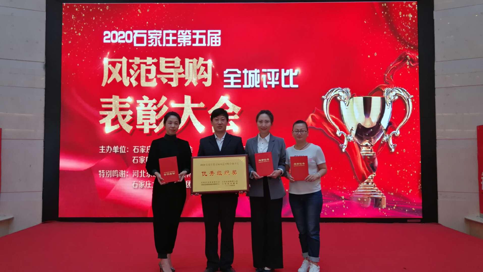 9月24日由石家莊市商聯會、市財貿工會、石家莊日報社、市商貿流通企業服務中心聯合組織的2020年石家莊第五屆風范導購全城評比表彰大會在石家莊市召開。經過3個月的層層選拔,銀座東購店推薦的陳娜、張曉玲、李亞茹等7名員工從全市200名參賽選手中脫穎而出,榮獲本次評比的最高獎—“風范導購”稱號。同時銀座東購店由于組織工作出色,被授予了活動的“優秀組織獎”。