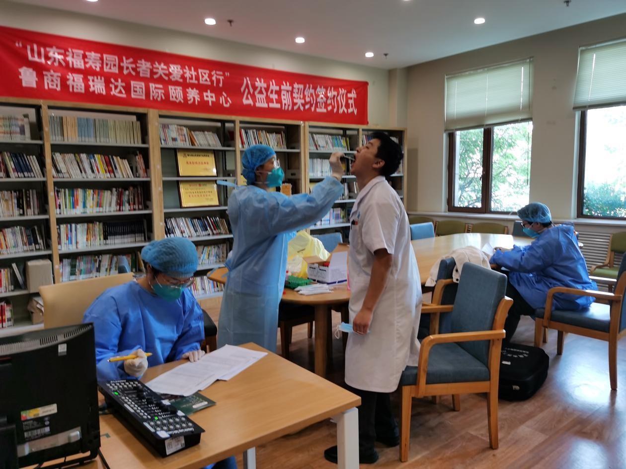 為確保全體員工安全和機(jī)構(gòu)內(nèi)長(zhǎng)者身體健康,10月12日上午,濟(jì)南市歷下區(qū)疾控中心對(duì)魯商福瑞達(dá)國(guó)際頤養(yǎng)中心內(nèi)的全部員工進(jìn)行咽拭子取樣核酸檢測(cè),檢測(cè)結(jié)果全部為陰性。中心每日對(duì)全體長(zhǎng)者及員工進(jìn)行體溫測(cè)量登記,嚴(yán)格落實(shí)一切消殺防疫工作。中心大門也持續(xù)關(guān)閉,家屬及來(lái)訪者非預(yù)約不可探視。