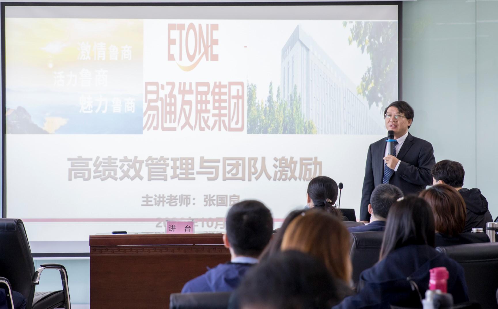 為貫徹落實集團創新工作精神,切實推動干部隊伍建設與工作質量提升,強化打造學習型組織,易通推出“賦能·突破--干部提升”系列培訓計劃,于10月17日成功開班并開展首期培訓。本次培訓邀請清華大學職業經理人訓練中心特聘講師、北京大學總裁班特聘講師、第八屆中國企業教育百強人力資源專業十佳培訓師張國良,圍繞“高績效管理與團隊激勵”主題作專題培訓,公司班子成員、各經營部位班子與條線負責人等60余人參加。