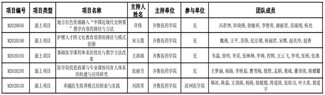 近日,省教育廳公布《2020年山東省本科教學(xué)改革研究項(xiàng)目立項(xiàng)名單》,齊魯醫(yī)藥學(xué)院馬克思主義學(xué)院許偉老師、護(hù)理學(xué)院宋玉霞老師、基礎(chǔ)醫(yī)學(xué)教學(xué)部王清路老師、馬克思主義學(xué)院張麗芳老師、臨床醫(yī)學(xué)院劉西常老師申報的5項(xiàng)課題獲批面上項(xiàng)目。