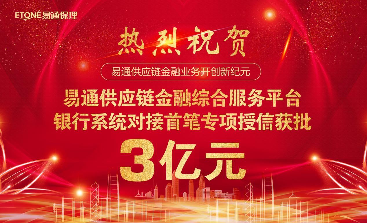 3月3日,由易通保理自主研發的易通供應鏈金融綜合服務平臺創新融資渠道,首次以供應鏈為基點實現與金融系統的無縫對接,新增北京銀行專項授信3億元。