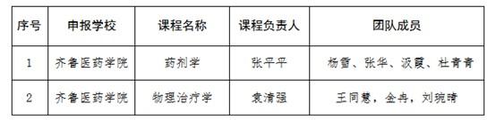 近日,從山東省教育廳《關于2021年山東省普通本科教育課程思政示范課程、普通高等教育教學研究示范中心評審遴選結果的公示》《關于山東省繼續教育課程思政示范課程、繼續教育教學研究示范中心評審遴選結果的公示》文件獲悉,齊魯醫藥學院中醫藥產業研究院張平平教授主持申報的《藥劑學》獲批山東省普通本科教育課程思政示范課程,臨床醫學院袁清強副教授主持申報的《物理治療學》獲批山東省繼續教育課程思政示范課程。