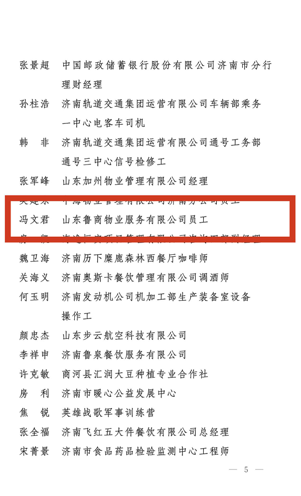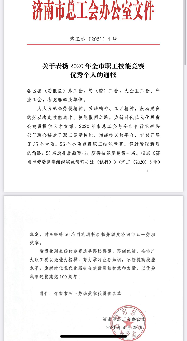近日,濟(jì)南市總工會發(fā)布《關(guān)于表揚(yáng)2020年全市職工技能競賽優(yōu)秀個人的通報(bào)》,魯商服務(wù)員工馮文君被授予2020年度“濟(jì)南市五一勞動獎?wù)隆狈Q號。