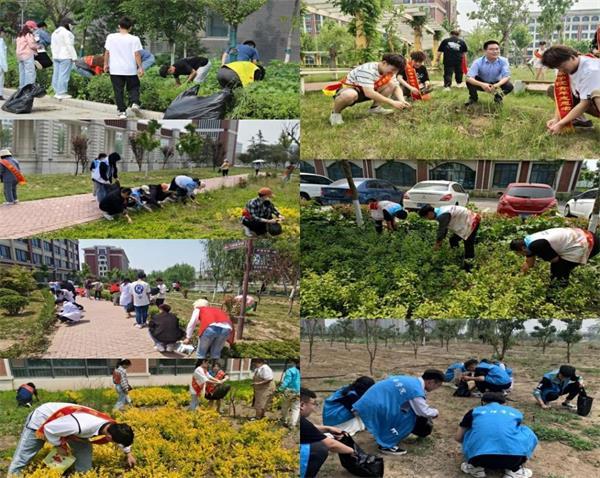 活動中,志愿者們分工明確、默契配合,不怕苦、不怕累,認真清理校園角角落落的雜草、垃圾,讓五月的校園更加潔凈美麗。