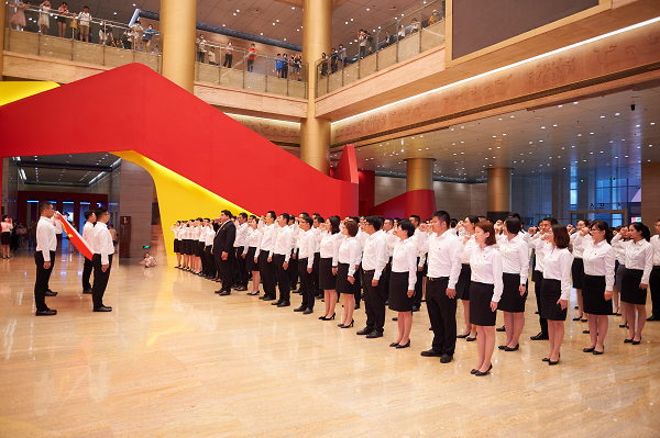 7月1日下午,銀座汽車全體黨員來到省博物館,參觀“讓黨旗永遠飄揚——山東省慶祝中國共產黨成立100周年主題展”。
