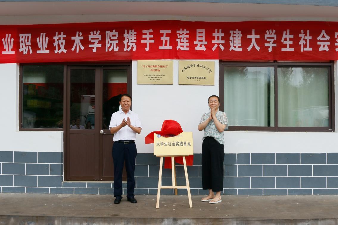13日,學校黨委副書記侯功海與日照五蓮縣叩官鎮鎮長李霞為基地揭牌。省派鄉村振興服務隊隊長蔣文、五蓮縣政協副主席烏云海、五蓮縣商務局副局長周建軍、山東商院師生代表、崮寺頭村村委成員參加揭牌儀式。
