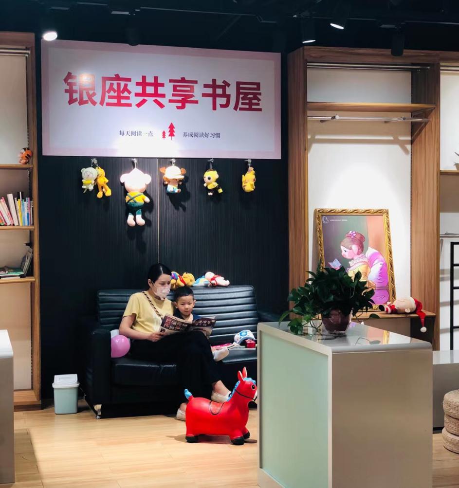 “共享書屋”坐落在銀座商城F2層,書屋內(nèi)千余本書籍全部由員工自愿捐贈,現(xiàn)場布展了綠植、沙發(fā)、坐墊,營造溫馨的休憩學習氛圍。喧囂的都市,繁忙的一天,“共享書屋”靜謐溫馨,帶給消費者更多的舒適體驗。