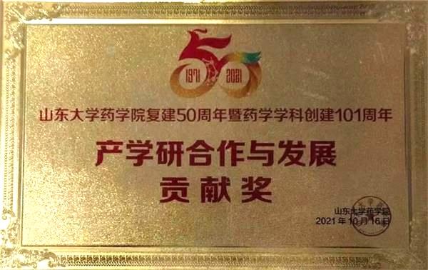 近日,省藥科院獲得山東大學(xué)藥學(xué)院“產(chǎn)學(xué)研合作與發(fā)展貢獻獎”。