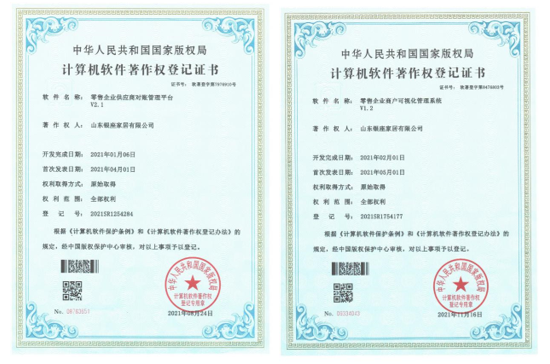 近日,銀座家居供應(yīng)商返款對(duì)賬平臺(tái)、商戶(hù)可視化管理系統(tǒng)2項(xiàng)數(shù)字化轉(zhuǎn)型成果先后取得國(guó)家版權(quán)局計(jì)算機(jī)軟件著作權(quán)登記證書(shū)。