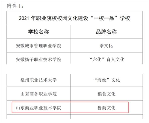 近日,教育部職業(yè)院校文化素質(zhì)教育指導(dǎo)委員會公布2021年全國職業(yè)院校校園文化建設(shè)“一校一品”評選結(jié)果,山東商院申報(bào)的“魯商文化”校園文化品牌成果成功入選。