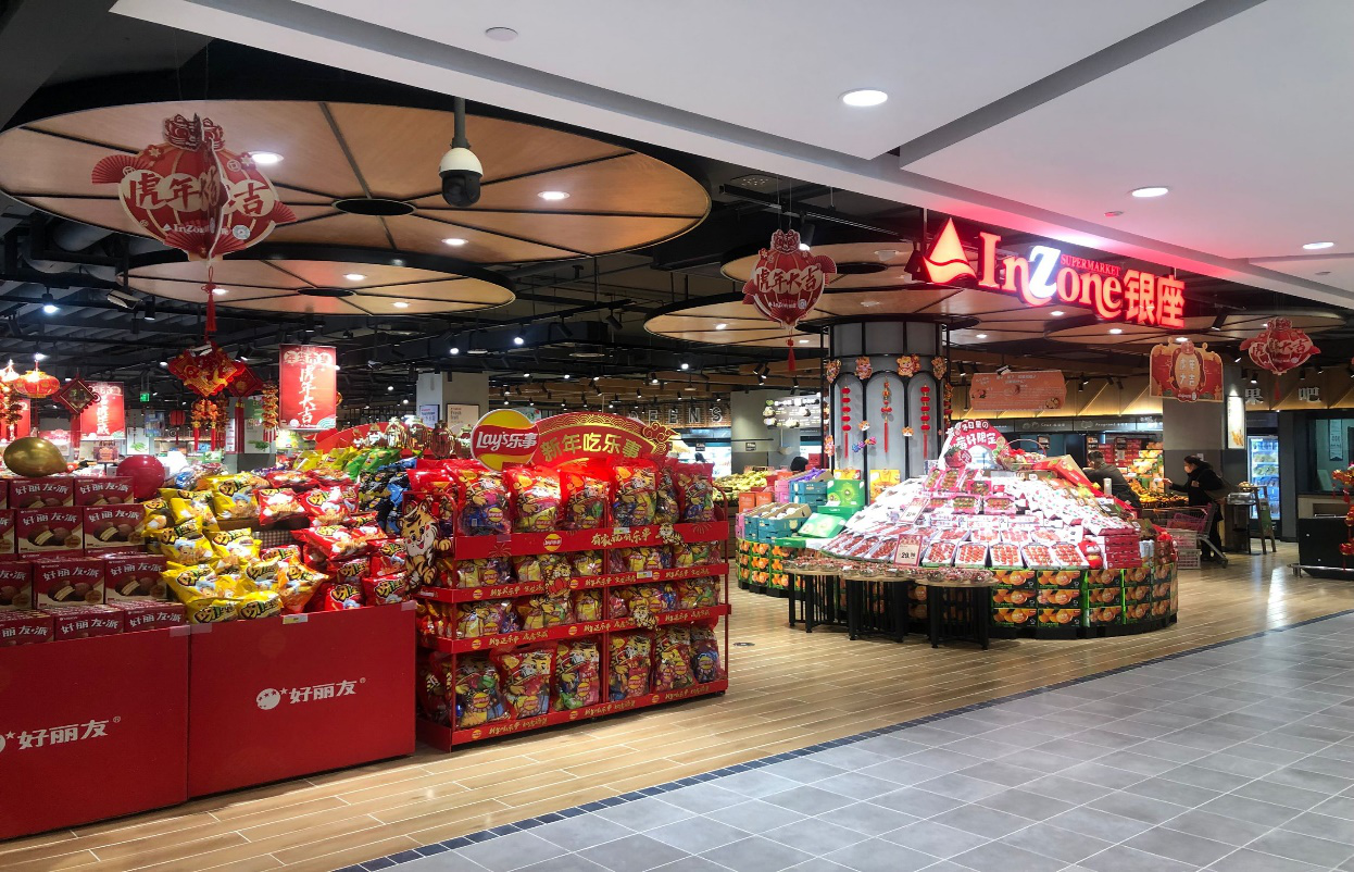 紅燈籠、春聯、虎年卡通玩偶等充滿節日元素的商品和裝飾讓賣場一片喜慶,配合創意布展令消費者感受到濃濃的年味兒。同時,通過“跨年迎新、滿百返百”“虎年賀歲、購物贈禮”“超值組合年貨禮盒”“預售團圓禮”“潮品心意禮”等活動,將新潮、健康、實惠的特色商品以多種形式展現在消費者面前,滿足一站式購物需求。