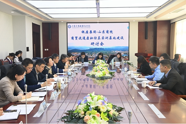 2月25日,銀座集團-山東商院商貿(mào)流通虛擬仿真實訓(xùn)基地建設(shè)研討會召開。山東商院黨委副書記、院長王鑫、銀座集團總經(jīng)理康翔共同主持會議,學(xué)院黨委副書記宋超參會。