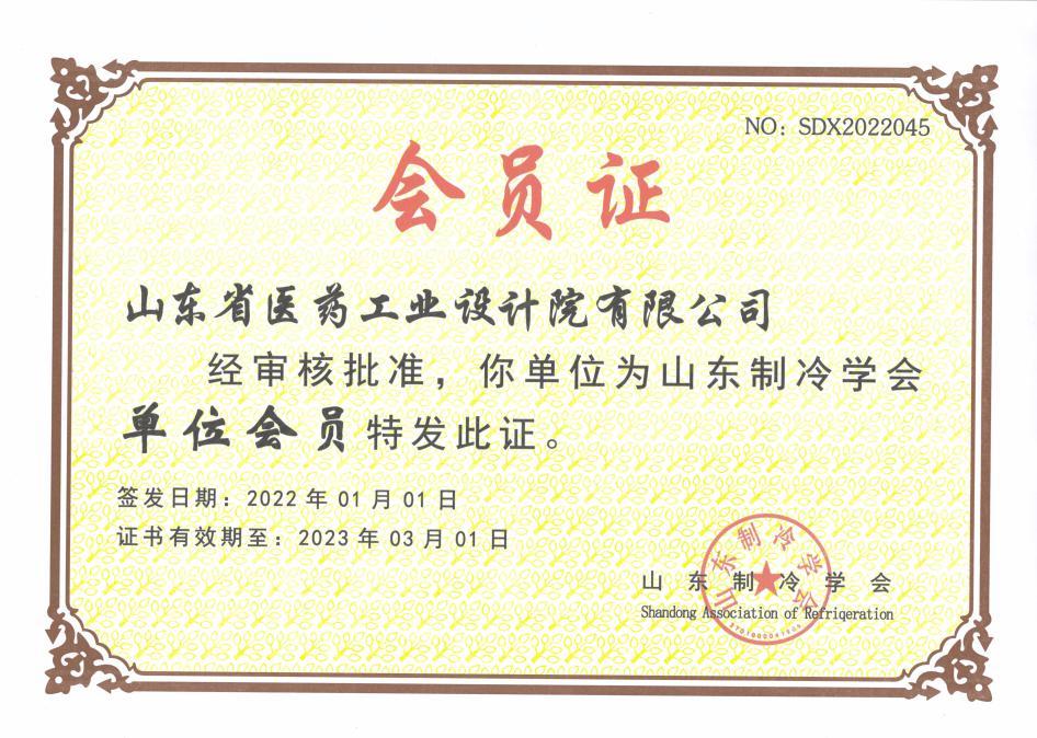 省醫工設計院正式成為山東制冷學會單位會員