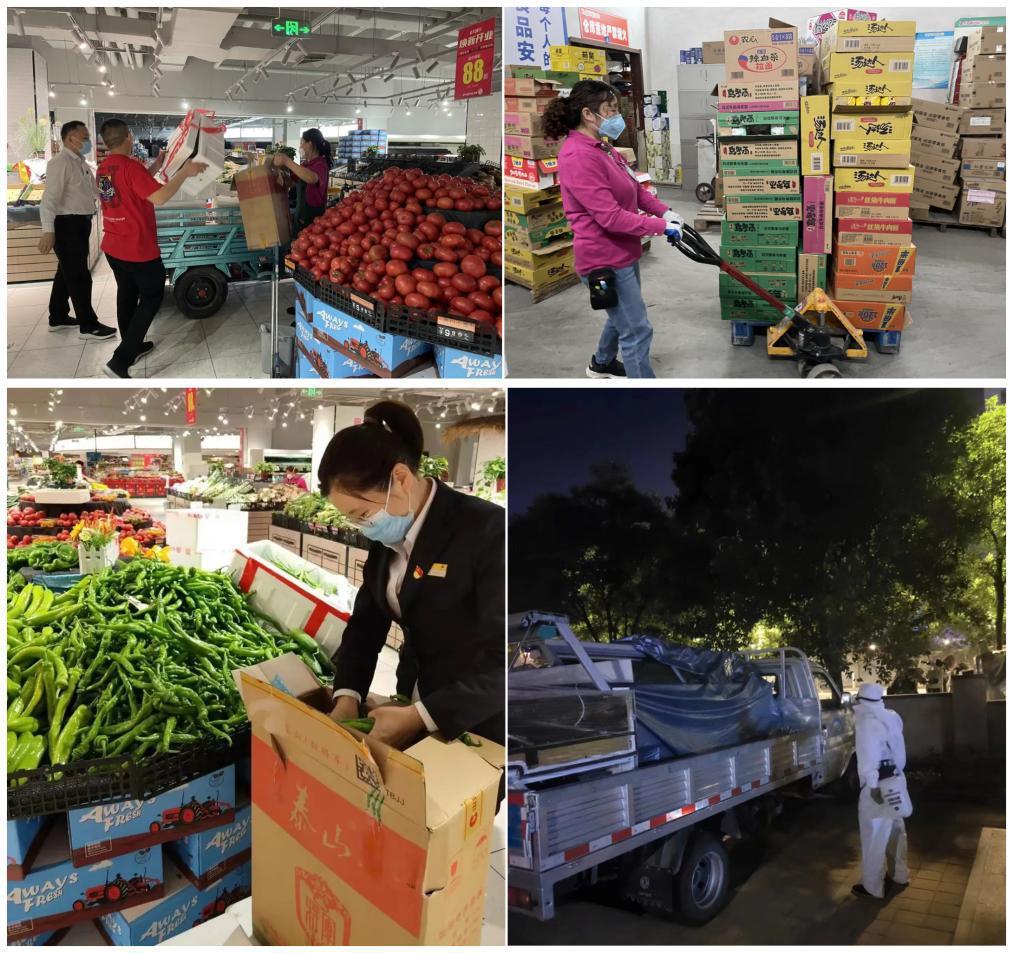 濟南銀座高新店黨支部廣大黨員身體力行為人民群眾筑起隔絕病毒的堅固屏障,以實際行動踐行著共產黨員的初心使命。支部書記王孜晨同志帶頭作表率,全體員工上下一心、眾志成城,做好各項保供工作,確保民生物資保供鏈不斷檔。白天,門店在出入口設立黨員先鋒崗,測溫、驗碼,確保不漏一人,嚴守安全門。同時根據所處地理位置和實際情況,積極主動聯系周邊封控、管控社區(qū),共建保供點,確保居民米面糧油、肉蛋奶等生活必需品供應充足及時。傍晚,門店為駐店員工送上愛心晚餐,準備好被褥等生活用品。夜半時分,當整座城市悄然進入夢鄉(xiāng),門店員工依然奮斗在一線。在自營蔬菜區(qū)、糧油米面區(qū)、卸貨區(qū)等,都能看到黨員突擊隊、青年突擊隊紅色馬甲的背影,捆扎蔬菜、打包、配送、消殺......所有工作井然有序、快速高效,大家懷揣著對黨的忠誠、對生活的熱愛,從黎明破曉到滿天星斗,完成日常經營與定向保供工作,切實凝聚起不舍晝夜、同舟“供濟”的強大合力。