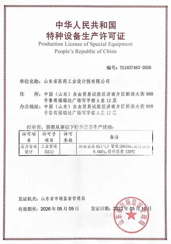 近日,經(jīng)過(guò)山東省特種設(shè)備協(xié)會(huì)專家組、濟(jì)南市市場(chǎng)監(jiān)管局監(jiān)督組的嚴(yán)格審查,省醫(yī)工設(shè)計(jì)院順利通過(guò)壓力管道設(shè)計(jì)資質(zhì)換證評(píng)審,取得省市場(chǎng)監(jiān)督管理局頒發(fā)的“特種設(shè)備生產(chǎn)許可證”。