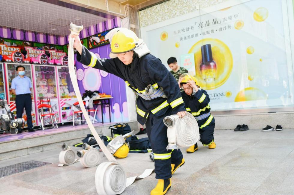 銀座濟(jì)南廣場店代表宣讀“第一責(zé)任人安全倡議書”活動方案,現(xiàn)場展示個人防護(hù)裝備穿戴、消防水帶連接、滅火器操作等技能項目,并開展應(yīng)急處置演練,充分展現(xiàn)了應(yīng)急隊伍的戰(zhàn)斗力。
