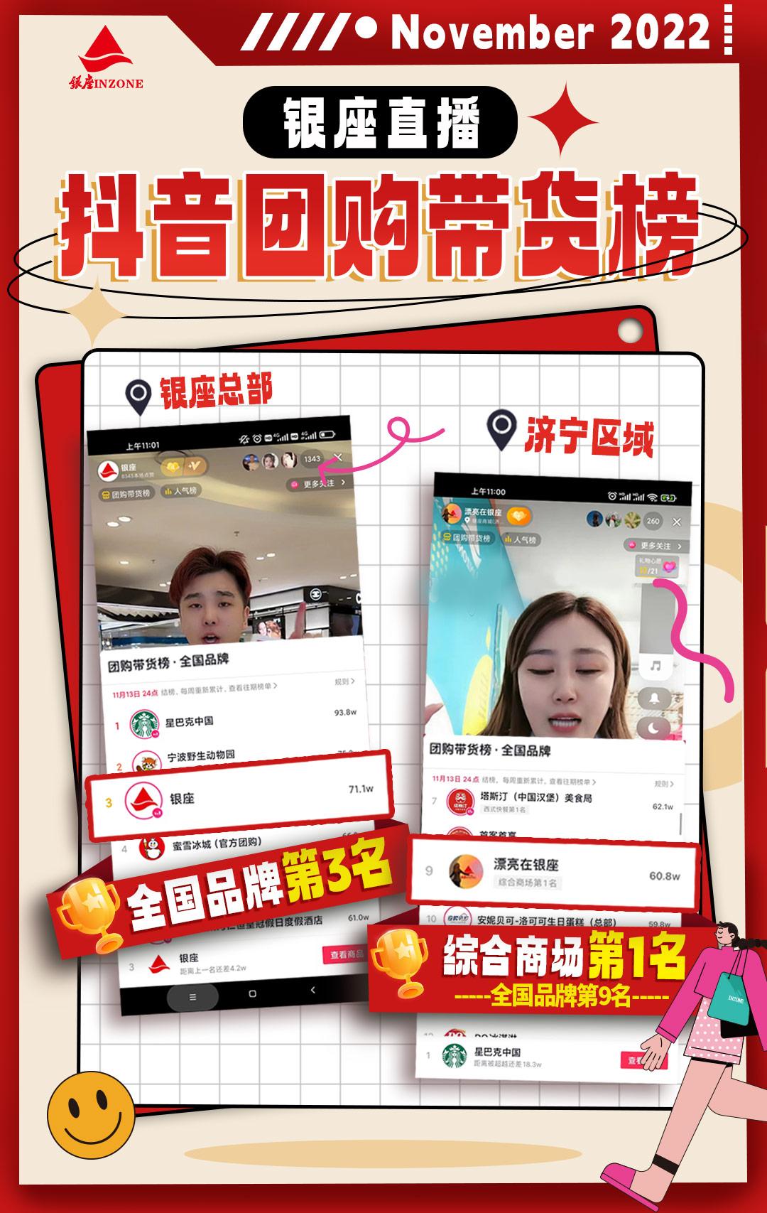 公司在深耕“銀座云逛街”自有平臺的同時,開通“抖音本地生活”“抖音電商”直播,探索公域、私域互促引流,推動直播矩陣建設,構建銀座直播品牌。作為山東首家上線“抖音本地生活”平臺的零售綜合體,截至10月底,銀座全區(qū)域門店均已覆蓋,累計開展直播450余場,帶動銷售近2000萬元,為門店日常經(jīng)營、新店開業(yè)、加工日配項目落地等提供引流。目前,銀座集團“抖音本地生活”直播已位居團購帶貨榜全國品牌排名第3位。今年“雙十一”檔期,公司將開展集超市、百貨、珠寶、家電、貴賓卡等于一體的全品類團購券直播活動,利用公域流量與實體商業(yè)相結合,助力門店獲客引流。