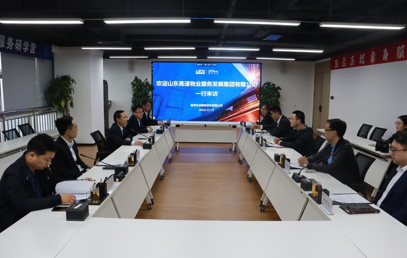 11月18日,山東高速物業服務發展集團有限公司(簡稱山東高速物業)董事長張世春一行到訪魯商服務開展合作交流,魯商服務董事長包松熱情接待并舉行座談。