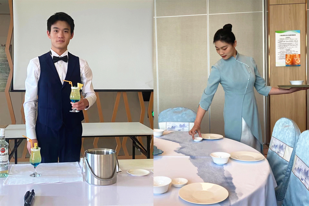 本次比賽由省教育廳、省工信廳、省人社廳、省農(nóng)業(yè)農(nóng)村廳等四部門主辦,共有來自全省高職院校的27個參賽隊參加。大賽著眼于考核學(xué)生在餐飲管理與服務(wù)工作中的綜合素質(zhì)和能力,分為中餐服務(wù)和西餐服務(wù)兩大項目,包括休閑餐廳服務(wù)、雞尾酒調(diào)制、中餐主題宴會設(shè)計和宴會服務(wù)4個模塊。其中,休閑餐廳服務(wù)和雞尾酒調(diào)制兩個模塊全程使用英語服務(wù),整個比賽內(nèi)容既體現(xiàn)中國特色,又接近世賽標(biāo)準(zhǔn),考核內(nèi)容多、難度大,專業(yè)要求高。