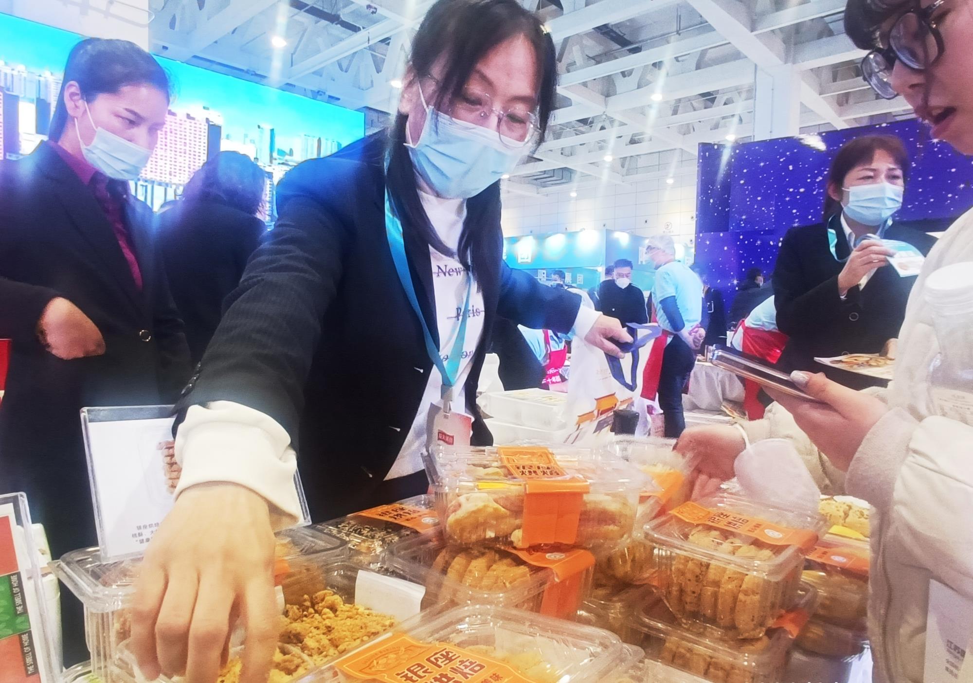 魯商集團展區內,多家產業單位大顯身手,使得參展菜品無比豐富。像即食類的手撕風干雞、特色紅燒肉、無骨鴨掌、千層酥、香辣海鮮炒飯、辣子雞丁飯,即烹類的奶油雞肉干酪焗飯、甜玉米魚滑、魚香蝦餅、宮保雞丁、麻婆豆腐、雞翅餃子,即熱類的非遺傳承菜品,即配類的烘焙海鮮等產品,可謂應有盡有。
