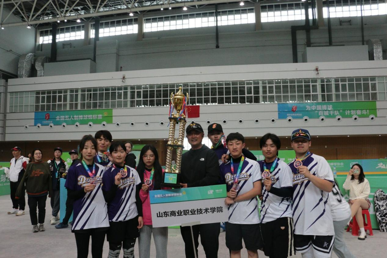 中國棒球協會于2022年首次將五人制棒球列入國家級錦標賽序列,本次比賽也是國內首次舉辦五人制棒球全國錦標賽,共有來自全國各地的18支代表隊參賽。山東商院棒球隊面對強手敢打敢拼,勇奪季軍,為學校取得榮譽。