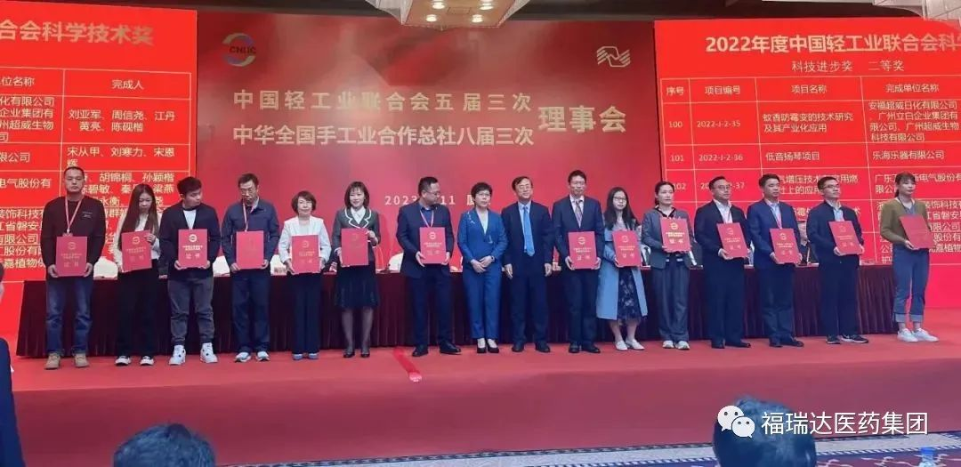 4月11日,中國輕工業聯合會五屆三次理事會在廈門召開,會上對2022年度在科學技術創新領域表現突出的輕工企業及項目進行表彰。福瑞達生物《植物源生物活性物研發及功能美妝產品產業化》項目從眾多優秀創新技術中脫穎而出,榮獲2022中國輕工業聯合會科學技術進步二等獎。