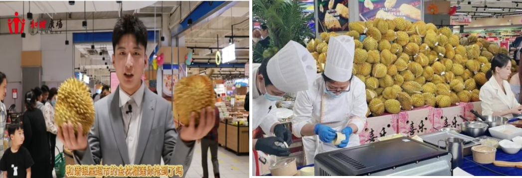 4月29日至5月3日,臨沂和諧店超市煥新開業(yè)之際,借助公司統(tǒng)一訂購泰國金枕榴蓮的價格優(yōu)勢,門店進(jìn)行大堆頭陳列,提前兩天在抖音進(jìn)行預(yù)售團(tuán)購,銷售團(tuán)券近80萬元。