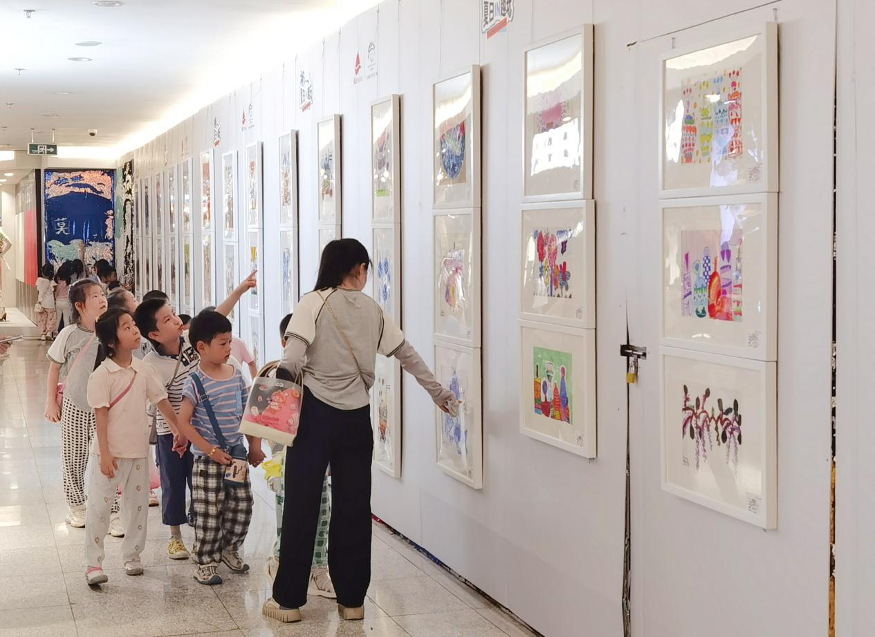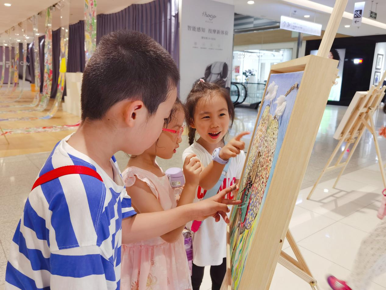 8月初,趙月和孩子一起來逛商城店,他們驚喜地發現商場二樓開辟了一片屬于孩子的畫展和打卡地。“這些畫太好了,能讓孩子在逛商場休閑的同時接受同齡段小朋友的畫藝熏陶,我太開心了!”美術老師出身的趙月,每次遛娃都會“職業習慣式”地搜索當地的藝術展。“這些藝術展以傳統文化為載體,用剪紙、紙鳶、水墨、皮影藝術展現童真、童趣,開拓了孩子們的思考空間。”