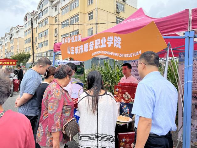 在高新區新添堡豐收節現場,山東城市學院展示了20余種自主研發的食品新品種,包括大棗糕、喜餅、月餅和糖酥杠子頭等,吸引眾人前來觀摩、品嘗和咨詢。學校中餐學院副院長李榮與志愿者耐心解答,并提供惠農科技服務。