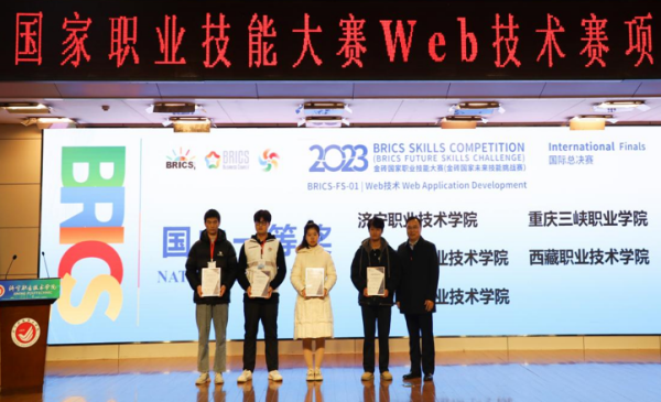 12月1日至3日,2023金磚國家職業技能大賽Web技術賽項國際總決賽舉行,來自金磚五國及孟加拉國、巴基斯坦等10國的線上線下共309支參賽隊伍參加此次比賽。經過激烈角逐,山東商職學院云計算技術與應用產業學院學生張可欣獲總決賽國內一等獎,指導老師薛現偉獲優秀指導專家獎,山東商職學院獲參賽國銅獎。